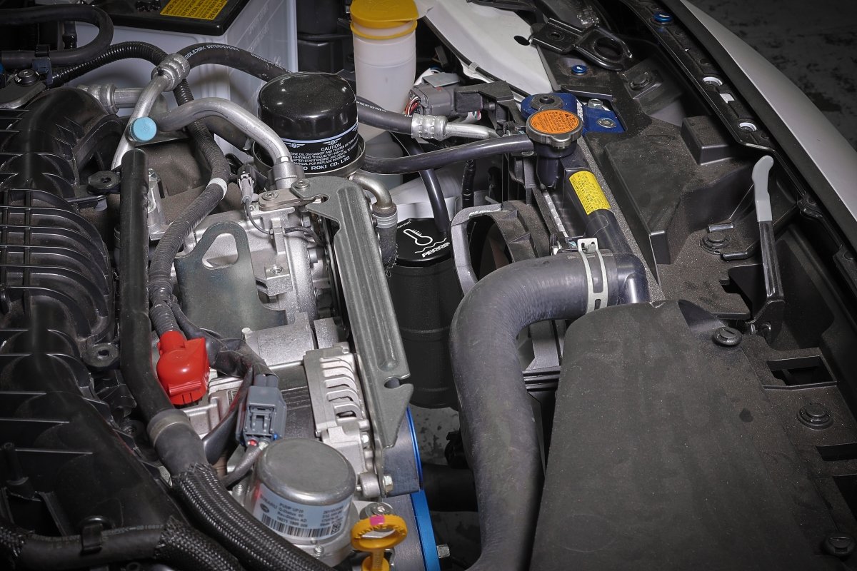 • Compact design provides increased clearance for aftermarket intercoolers or turbo piping
