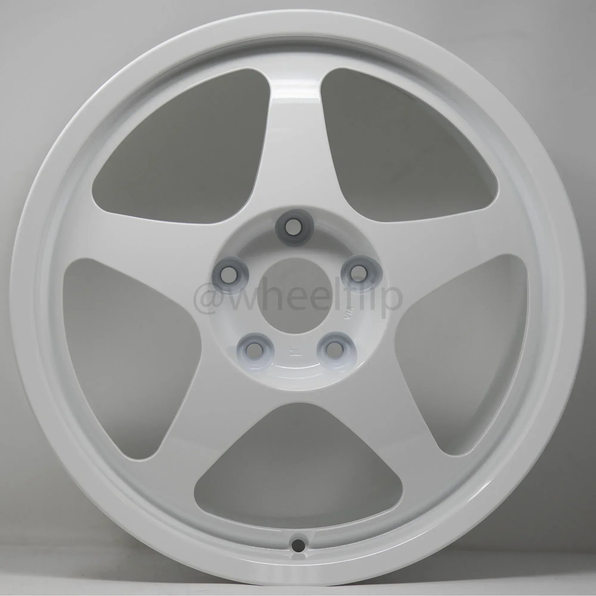 This specific configuration is highly desirable for those seeking a square setup, as the uniform sizing across all four corners simplifies tire rotation and ensures balanced handling characteristics. The 5x114.3 bolt pattern and offset are optimized for the S2000 platform, providing confident fitment and clearance for brake components. The gloss white finish adds a fresh, clean look that pairs well with a variety of exterior colors and styles.