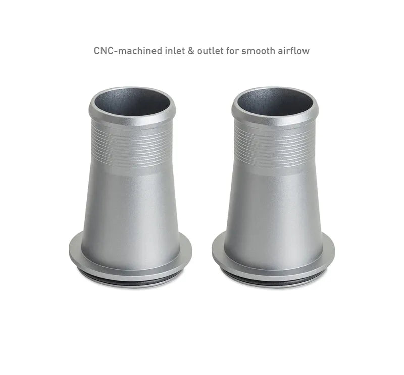 - CNC-machined inlet and outlet for smooth, unrestricted airflow