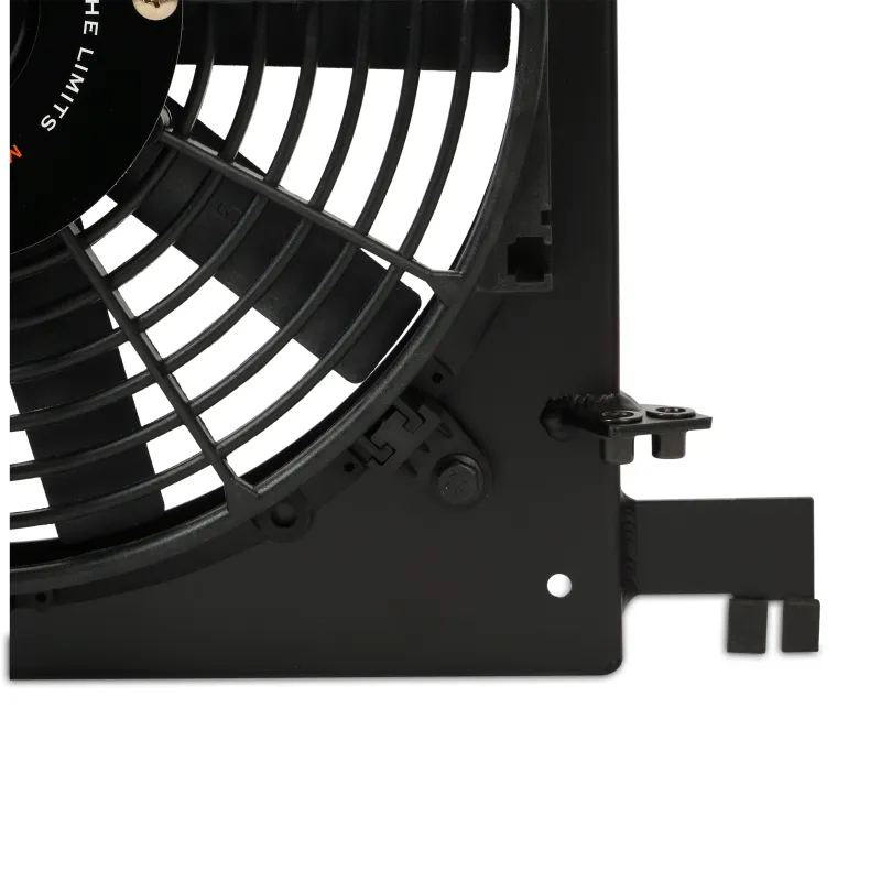 The fan shroud is crafted from high-quality brushed aluminum, chosen for its lightweight strength and superior thermal conductivity compared to plastic alternatives. The black anodized finish not only adds a sleek, performance-oriented aesthetic but also provides corrosion resistance to withstand harsh engine bay conditions. Its slim 3.5-inch depth profile is meticulously engineered to optimize airflow while freeing up space for aftermarket performance parts, making it an excellent choice for tuners and racers alike.