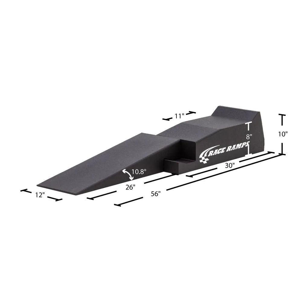 The Race Ramps Two-Piece Ramp set is engineered specifically for low profile and lowered vehicles, providing a safe and convenient way to elevate your car for maintenance or inspection. Each 56-inch ramp lifts your vehicle 8 inches, offering improved access to the underbody without the hassle of traditional jacks or lifts. Designed for enthusiasts and everyday drivers alike, these ramps combine strength, durability, and portability to make working on your vehicle easier and safer.