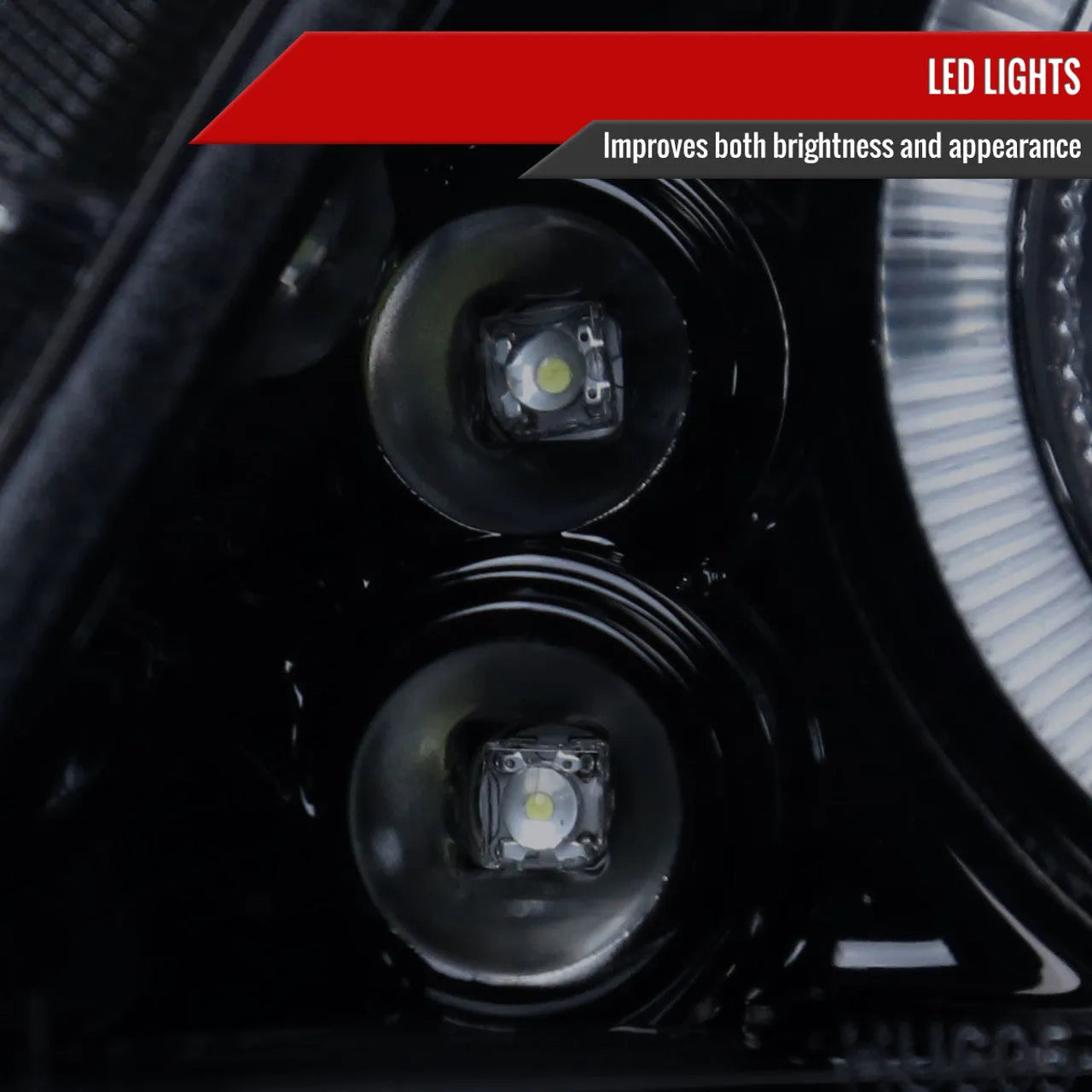 - Smoke lens with glossy black housing for a modern, aggressive look