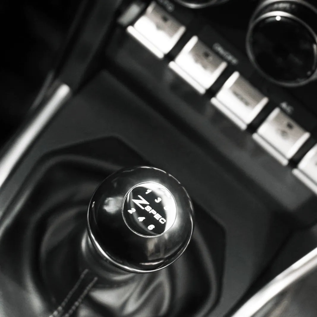 843612122490 ZSPEC Design 08-26 Toyota GR Corolla / GR86 / GR Supra / 86 / Subaru BRZ / Scion Shift Knob. ZSPEC Design's weighted shift knob (~200 grams) combines Delrin polymer with a polished stainless-steel base for extreme comfort, never feeling too hot or cold like metal knobs. Features a unique top coin with either the ZSPEC logo or 6-speed shift pattern. Easy installation on M12-1.25 threaded shifters and includes 3M tape for secure coin placement. Upgrade your driving experience with enhanced feel and style.
