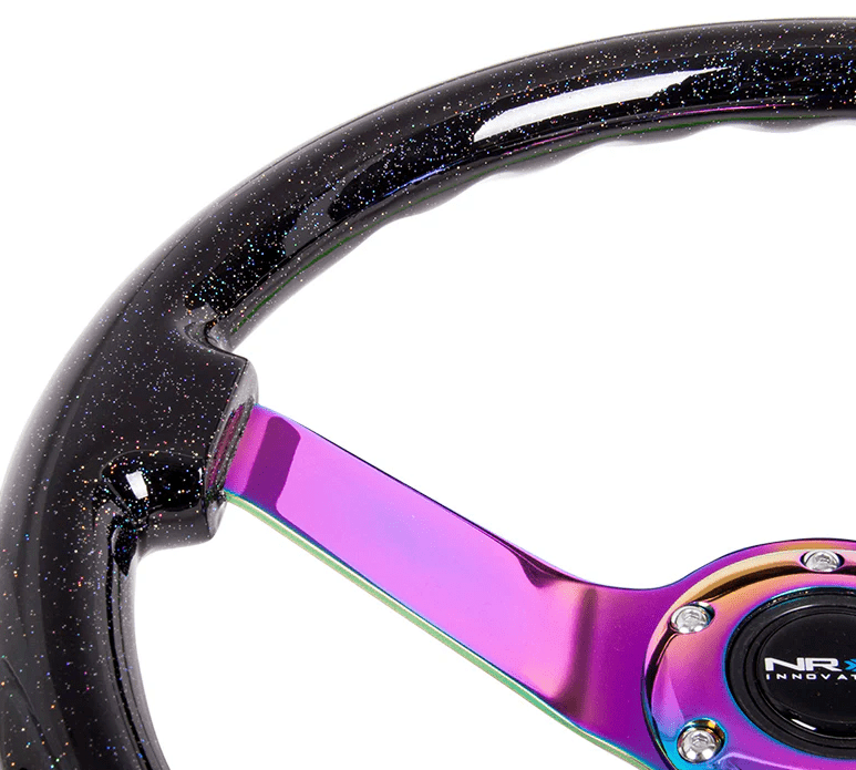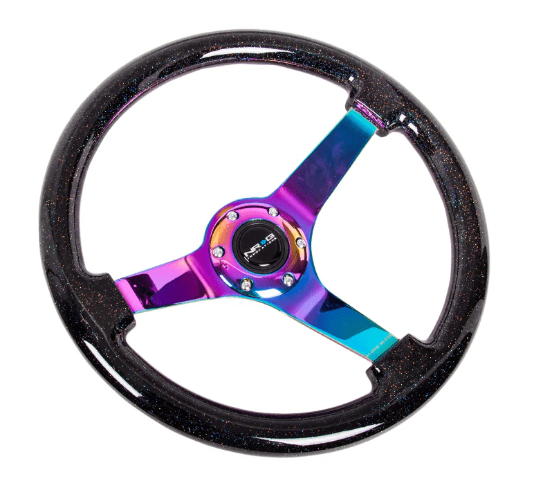 • NRG 350mm Deep Dish Steering Wheel with Neochrome Center and Black Sparkled Woodgrain Grip