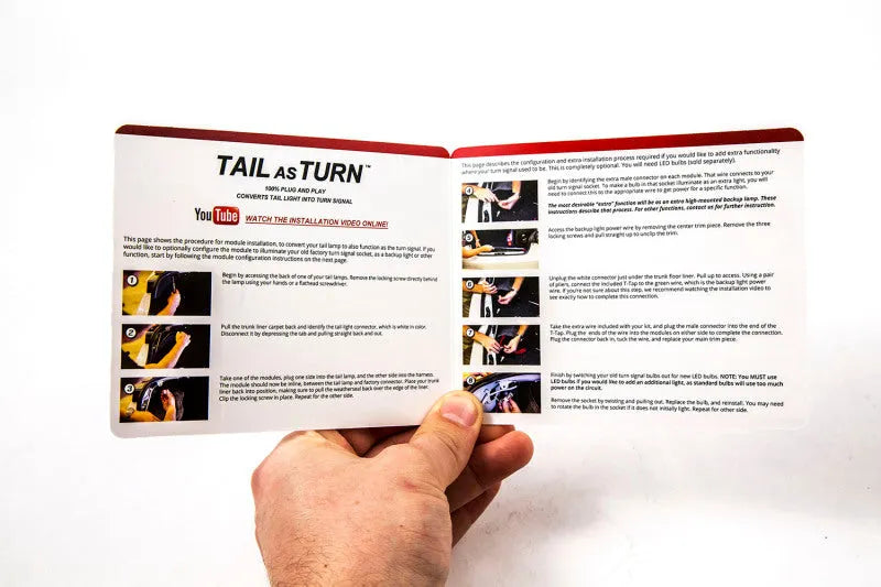 The Tail as Turn + Backup Module is designed for effortless installation. It plugs directly into your vehicle’s OEM tail light connectors, eliminating the need for any cutting, splicing, or rewiring. You won’t even need to remove your tail lights to complete the upgrade.