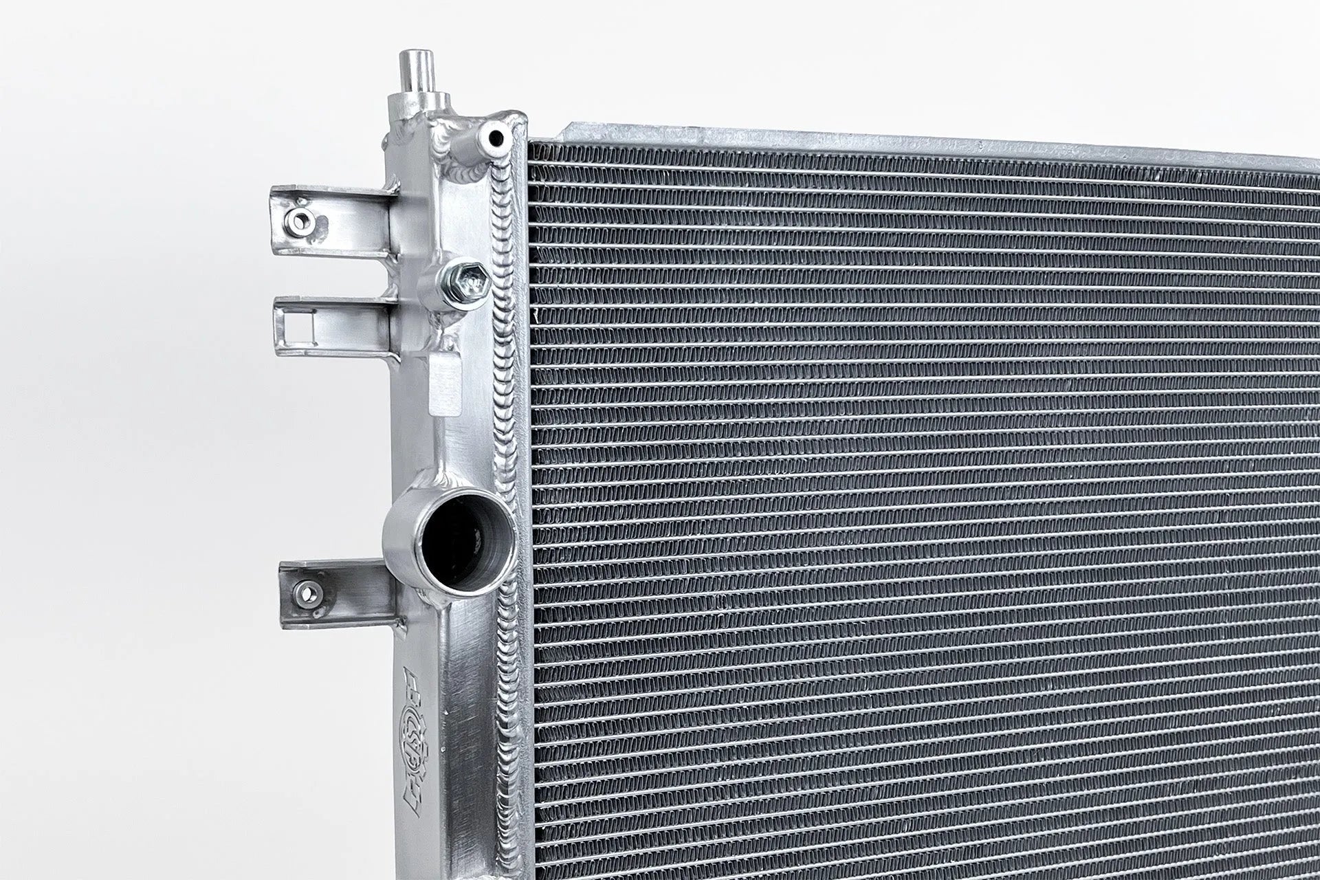 Pre-installed foam strips improve sealing against the radiator support, reducing air leakage and enhancing overall cooling performance. The radiator’s hand-brushed satin finish not only looks refined but also helps resist corrosion over time.