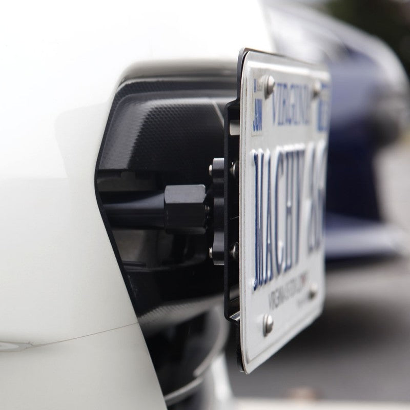 • Maintains full compliance with front license plate mounting laws