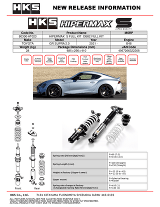 HKS Hipermax S Coilovers: Toyota GR Supra (20+)