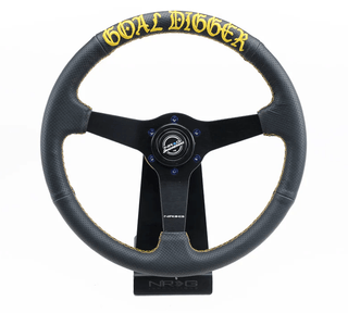 NRG Steering Wheel: Fits Most Models w/ Holes, Black Center, Blue Stitching, Blue Stripe and Black Suede Grip