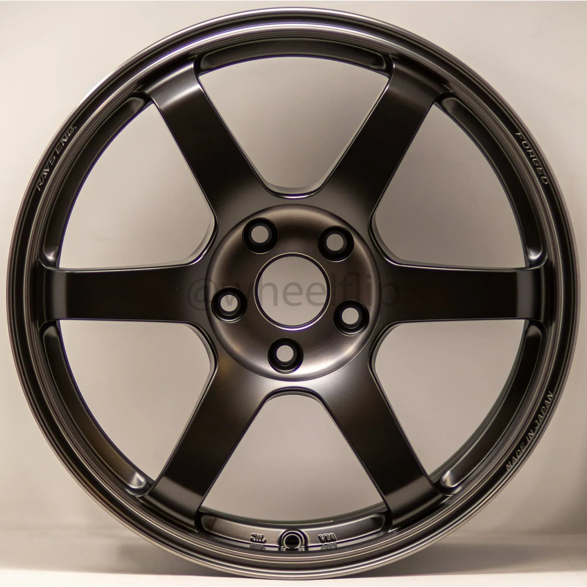 Authentic Volk Racing TE37 Saga SL M-Spec wheels in tuner fitment for various cars. Forged construction with subtle concave six-spoke design and durable pressed black finish.