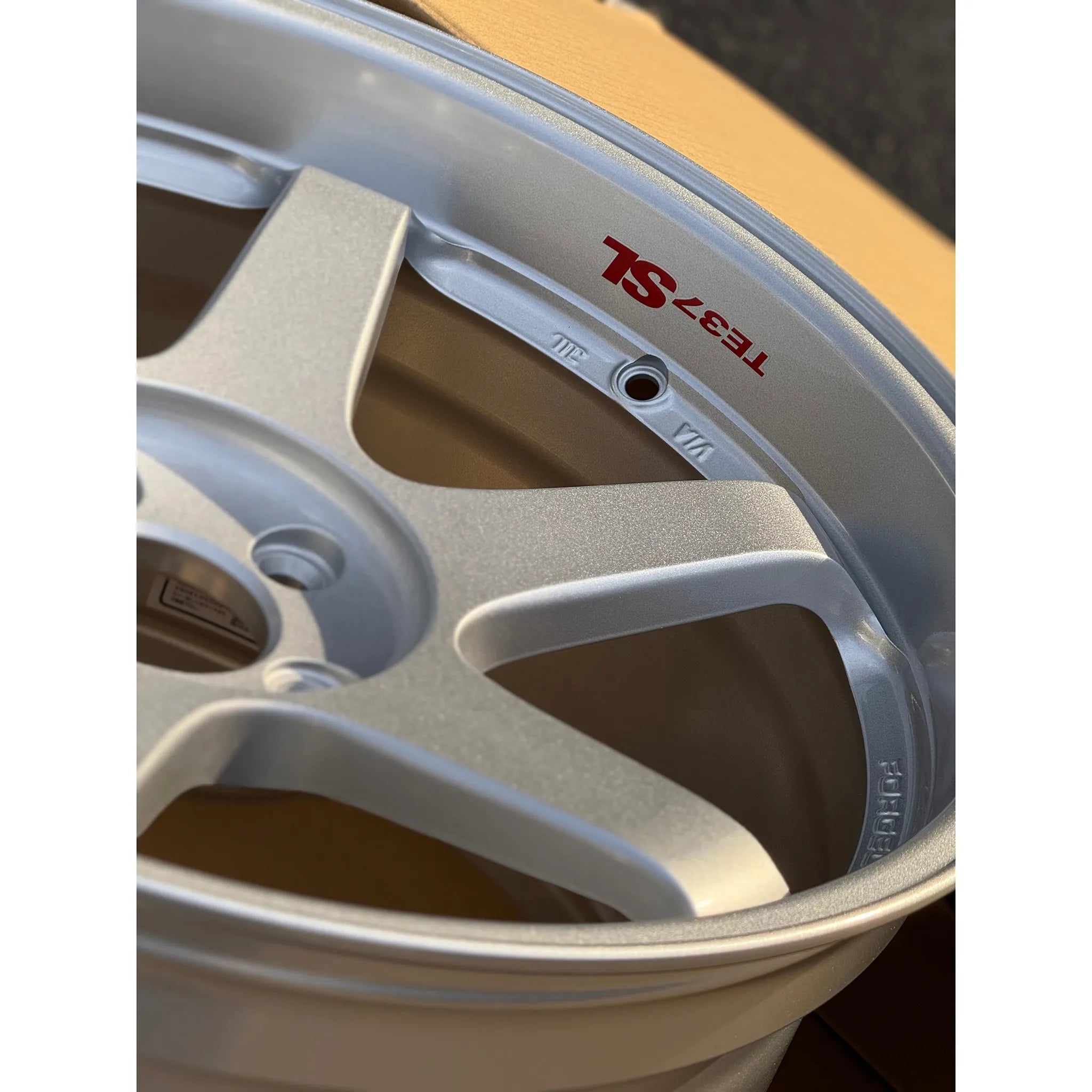 Manufactured using a high-pressure forging process, the TE37SL achieves exceptional strength-to-weight ratios. This process compresses the aluminum alloy, aligning its grain structure for superior durability and impact resistance compared to cast wheels. The Diamond Silver finish is meticulously applied to ensure a smooth, consistent metallic sheen that resists corrosion and maintains its luster over time.