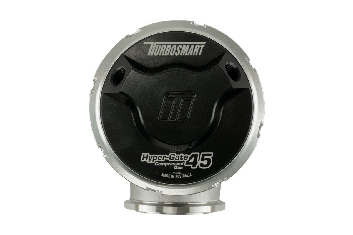 The Turbosmart GenV HyperGate45CG is a high-performance external wastegate engineered for advanced boost control strategies that utilize compressed gas systems, such as CO2 drag racing and compressed air World Rally Championship (WRC) applications. Designed to handle high-pressure top chamber biasing, this wastegate offers a broad boost bandwidth and exceptional durability.