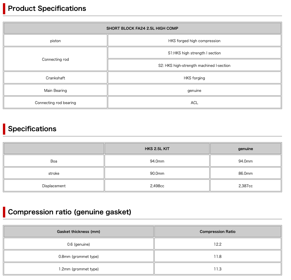 - Increased Displacement: Bore of 94.0mm and stroke of 90.0mm increase engine displacement to 2,498cc, delivering more torque and improved throttle response.