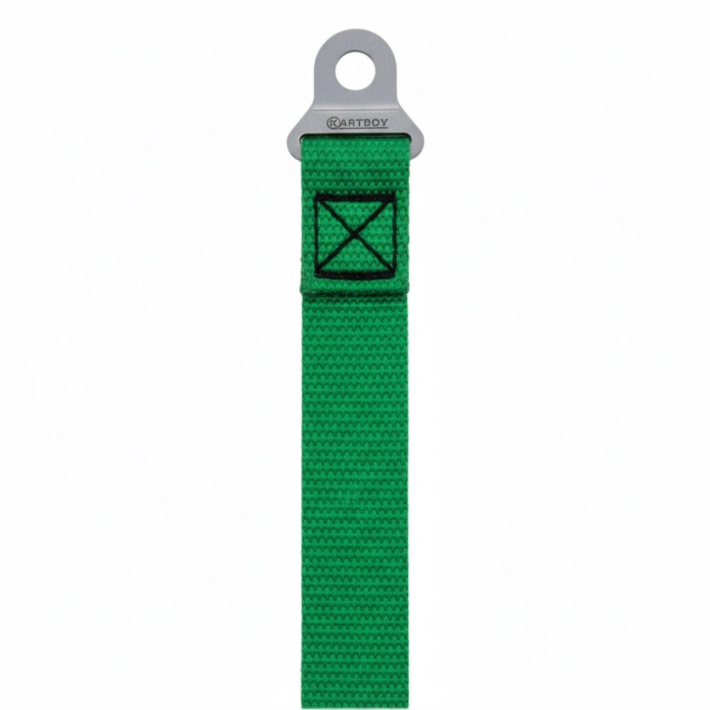 Built for enthusiasts who appreciate quality materials and craftsmanship, the Yanky McStrappy Door Pull Strap combines strength with a clean aesthetic. Its vibrant green webbing adds a pop of color to your vehicle’s interior while maintaining a professional finish with the laser-engraved Kartboy logo.