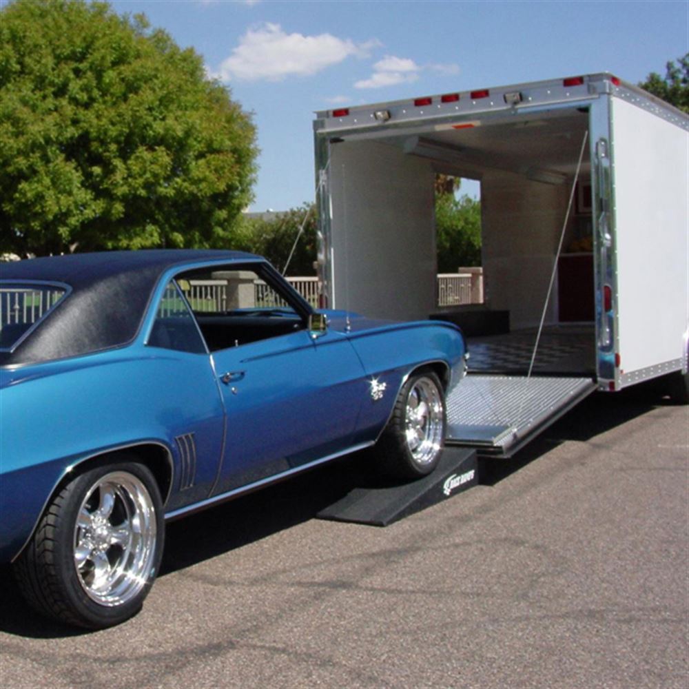 - Simple setup: lower your trailer door into the notch and drive your vehicle up the ramp directly into the trailer.
