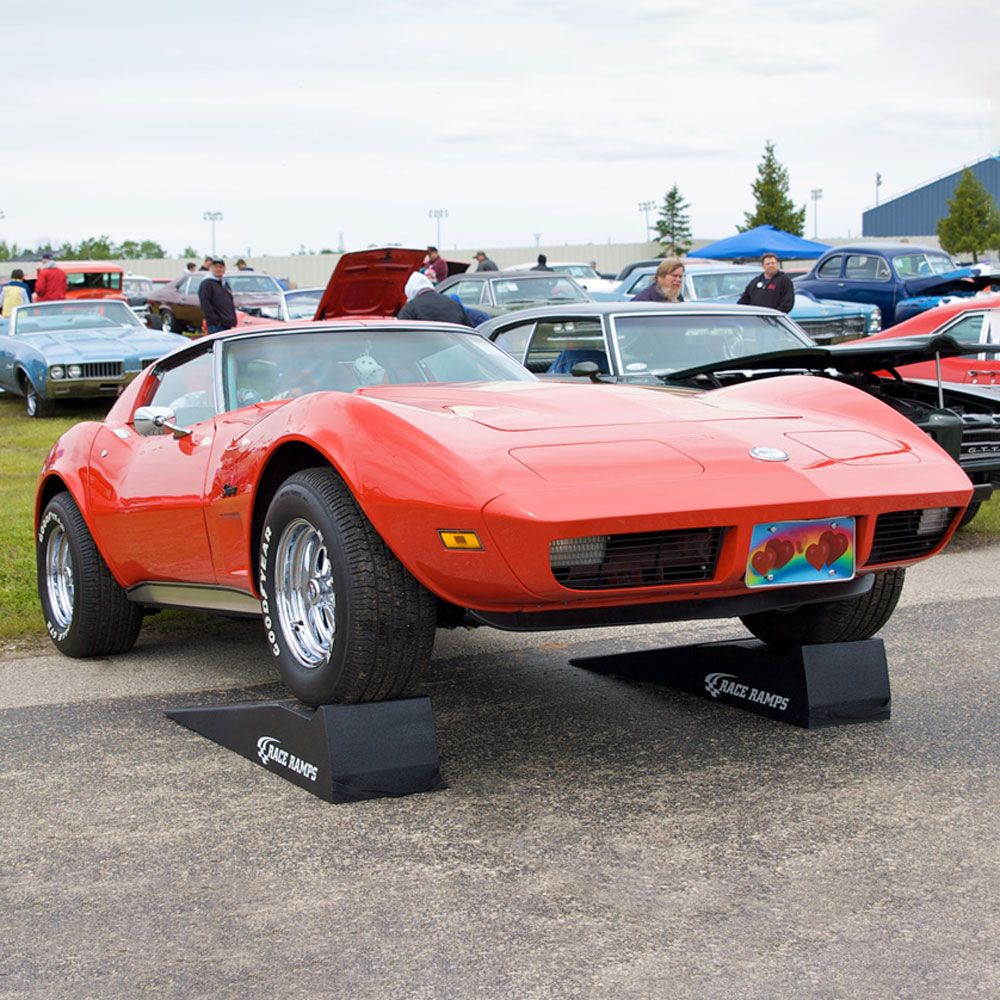Race Ramps are designed to fit most vehicles with low profiles or lowered suspensions. Their accommodating width and length make them compatible with a wide variety of tire sizes and vehicle types. Simply place the ramps on a flat surface and drive your vehicle up the ramps to gain the desired lift.